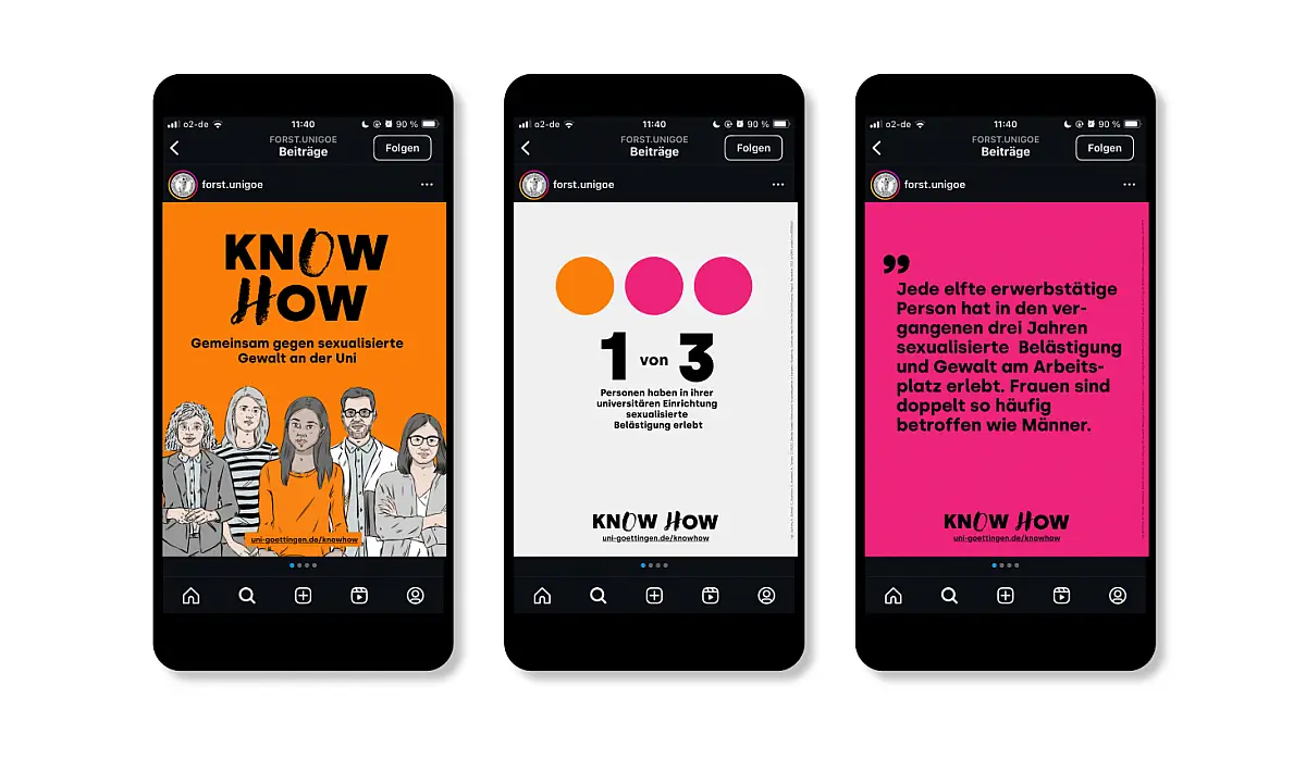 "KNOW HOW – Gemeinsam gegen sexualisierte Gewalt" ist ein Online-Selbstlerntool, das wir für die Universität Göttingen erstellt haben. Innerhalb eines Test soll durch Videos und Fragen zum Nachdenken angeregt und eine Reflektion der unterschiedlichen und der eigenen Rolle(n) angestoßen werden, ob in einem Arbeits-, Lern- oder Forschungskontext. Die kurzen Animationsfilme zeigen Szenen des universitären Alltags in denen sexualisierte Gewalt oder ihre Anbahnung stattfindet aus unterschiedlichen Perspektiven. KNOW HOW spricht alle Mitglieder der Universität an und will zu einen Kulturwandel an der Universität beitragen. Der Test kann hier durchgeführt werden: https://www.uni-goettingen.de/knowhow