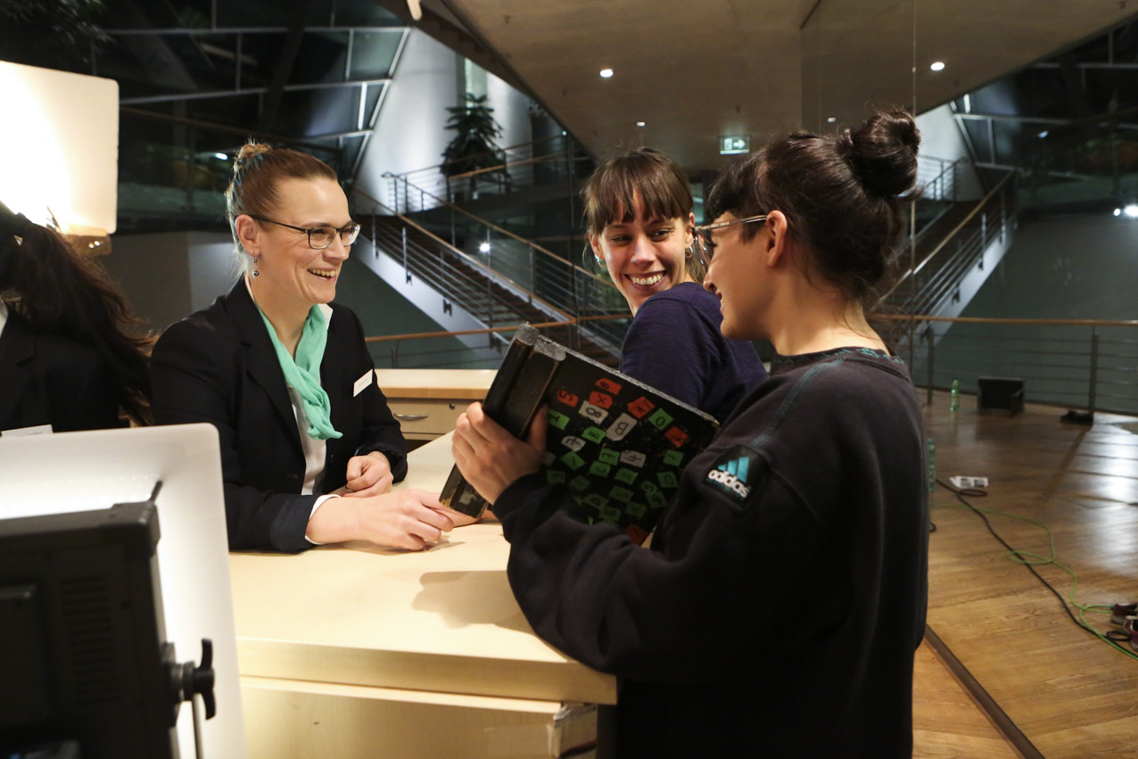 Our aim was to make a fiction with strong, complex female characters that deals with the relationship between the possibilities and limits of reproduction, both technologically and socio-politically. We wanted to look at the current relevance of a classic call to arms by Marxist feminist theorist Silvia Federici, “Wages Against Housework” (1975), by relocating its demands in today’s landscape of fast-paced technological change and increasing precarity. While the film takes place in Germany, it treads on international ground because of its negotiation of motherhood and feminized labor in times of neoliberal uncertainty. Nichts ist erledigt / Not Yet Over is thus not a film for or against motherhood, but rather an essay on the conditions of reproduction today. We developed the script around the antagonism between Maria, who wants to have a child, and Ewa, who doesn’t. The younger figure of Selma serves as a joker, mediator, and instigator, galvanizing the conflict between the two women. In the end, they find a collective voice together in the coat room to counter that of our conference speaker and the kind of corporate liberal feminism she represents onstage. While she preaches the cult of “having it all” to a crowd of enraptured elites, she overlooks at whose expense that ‘all’ comes. On the contrary, as our film title proclaims, we think that there is still a lot to be done.
