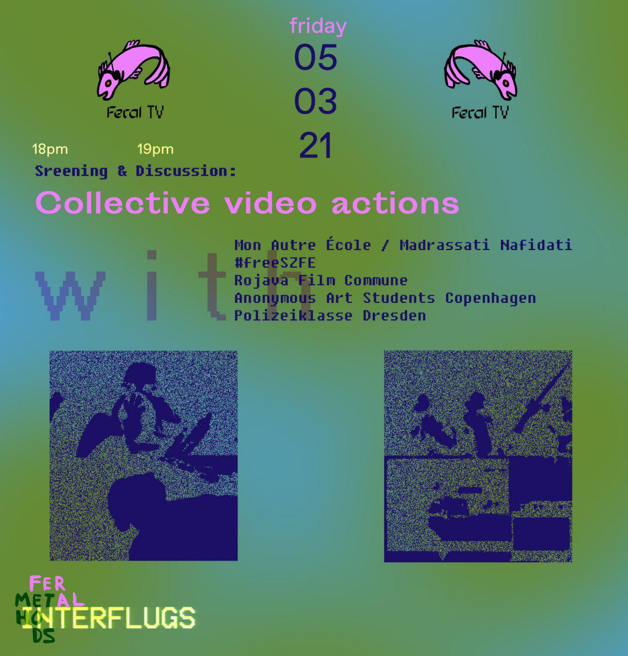 Interflugs 30: feral methods: online exhibition, research installation, and study program at nGbK Berlin, organized by the working group Erfan Aboutalebi, Ernest Ah, Nino Bulling, Bilge Emir, Immo Heat, Lucia Krug, Kornelia Kugler und Caio Soares.