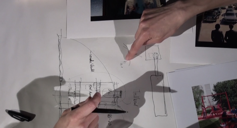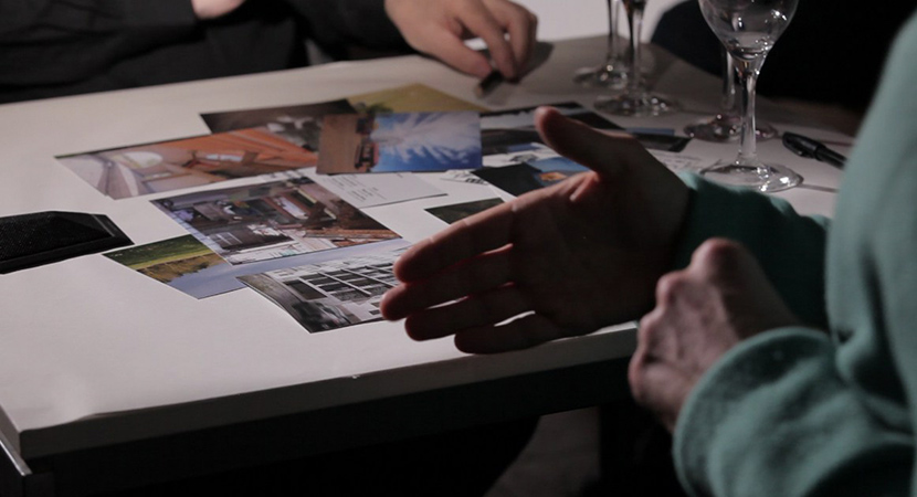 The architects were invited to work with materials during the discussion – sketching, annotating, or presenting references –which were captured via an overhead camera and simultaneously projected for the audience.