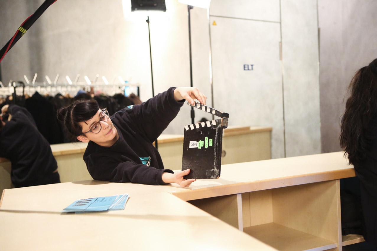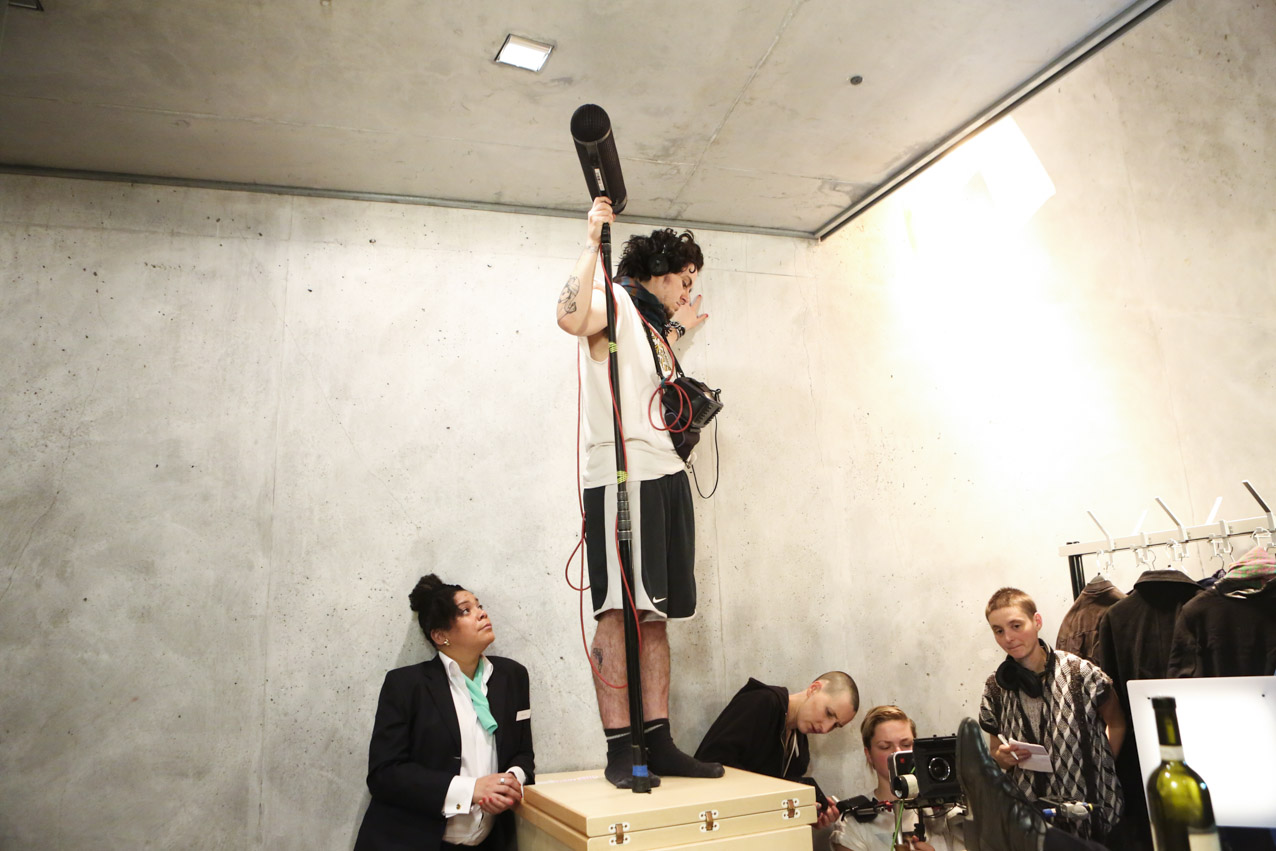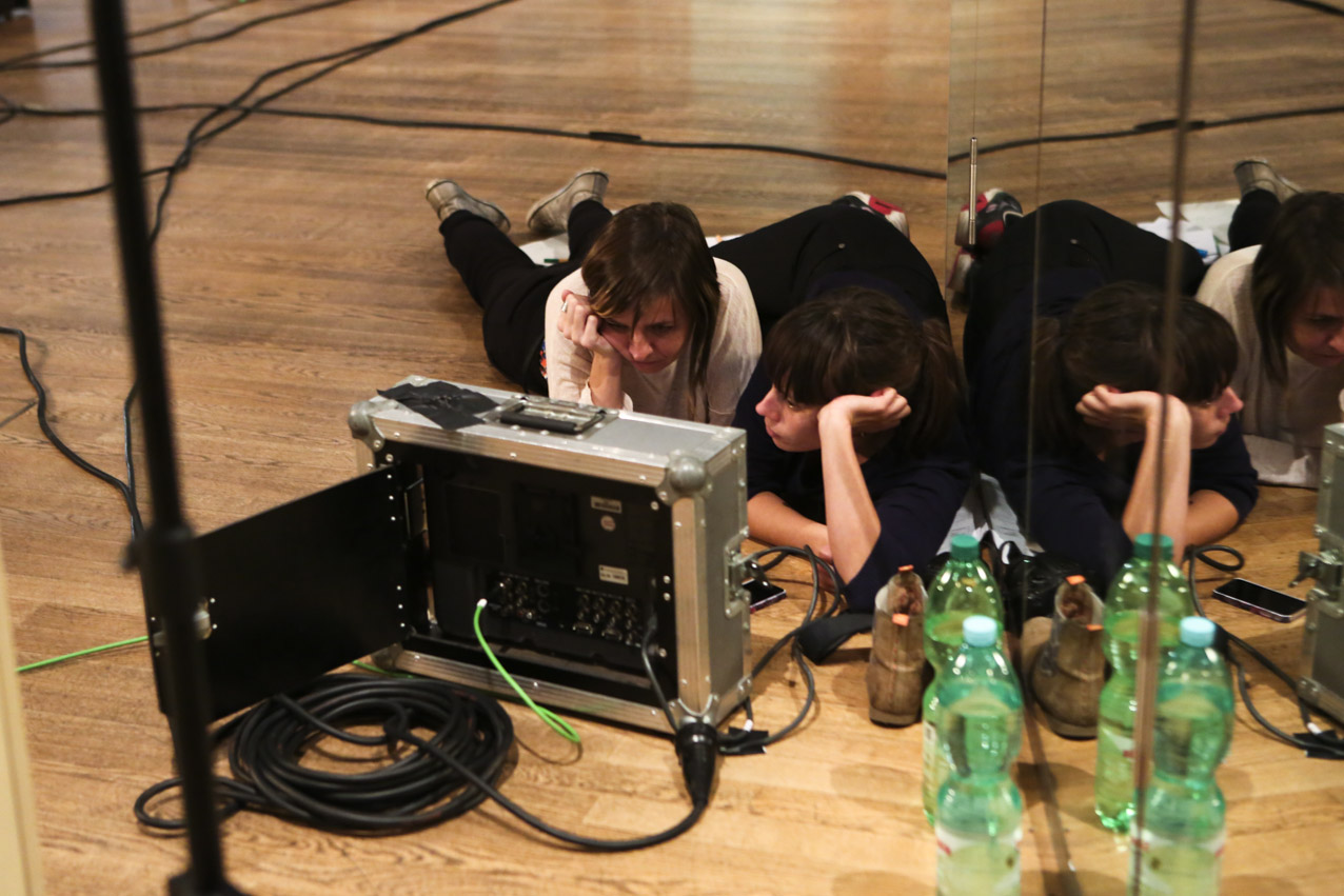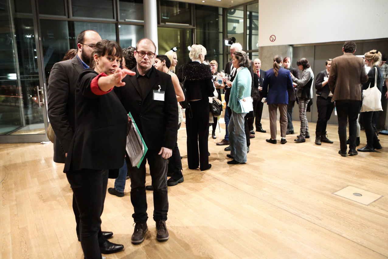 Our aim was to make a fiction with strong, complex female characters that deals with the relationship between the possibilities and limits of reproduction, both technologically and socio-politically. We wanted to look at the current relevance of a classic call to arms by Marxist feminist theorist Silvia Federici, “Wages Against Housework” (1975), by relocating its demands in today’s landscape of fast-paced technological change and increasing precarity. While the film takes place in Germany, it treads on international ground because of its negotiation of motherhood and feminized labor in times of neoliberal uncertainty. Nichts ist erledigt / Not Yet Over is thus not a film for or against motherhood, but rather an essay on the conditions of reproduction today. We developed the script around the antagonism between Maria, who wants to have a child, and Ewa, who doesn’t. The younger figure of Selma serves as a joker, mediator, and instigator, galvanizing the conflict between the two women. In the end, they find a collective voice together in the coat room to counter that of our conference speaker and the kind of corporate liberal feminism she represents onstage. While she preaches the cult of “having it all” to a crowd of enraptured elites, she overlooks at whose expense that ‘all’ comes. On the contrary, as our film title proclaims, we think that there is still a lot to be done.
